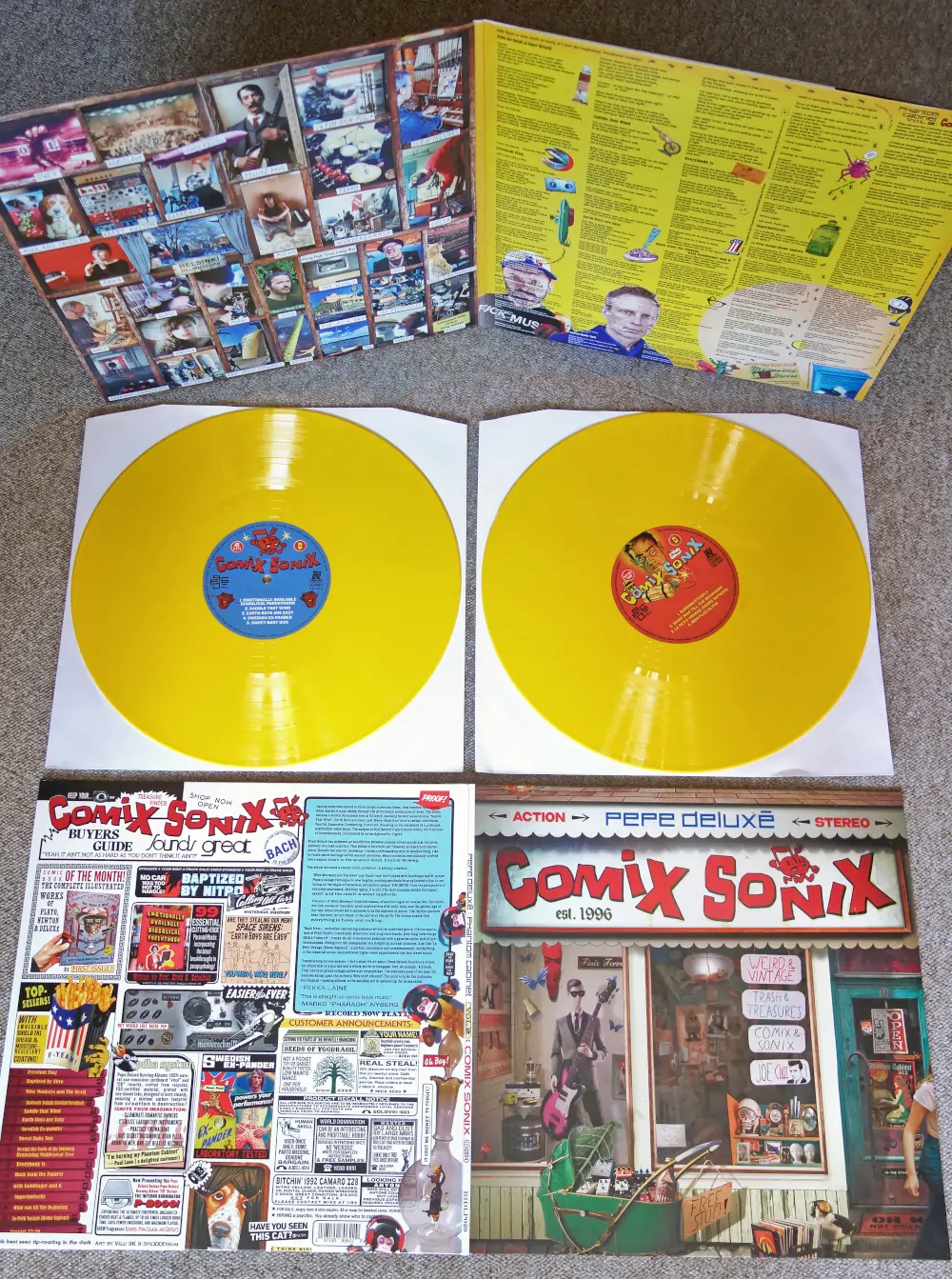 The new album follows Pepe Deluxé’s extraordinary 2021 release, Phantom Cabinet Vol. 1, which was a decade in the making as the duo searched the ends of the world to unearth the oldest, weirdest instruments ever made to play on it. To name a mere few: the world’s largest cowbell, a synth designed for group sex, and a sacred Tibetan human skull drum. Comix Sonix sees music’s mad hatter inventors, Pepe Deluxé, continue their quest for sonic brilliance and uniqueness. The album showcases an extraordinary array of devices, each with its own unique story. In addition to Bart Hopkin’s collection, the album also features notable instruments such as the American Airlines 747 flying coach lounge Wurlitzer, caressed by the fingers of Frank Sinatra, Jr., the world’s oldest known musical instrument – a 40,000 BC mammoth bone flute, and a 19th-century lithophone, Richardson’s Rock Harmonicon, once cherished by Queen Victoria herself. Even the piano of the airship Hindenburg is there, resurrected from the ashes with modern technology. And not forgetting Mr. Jonah Falcon’s largest “instrument” in the world – ensuring that the album has a little something for everyone!
